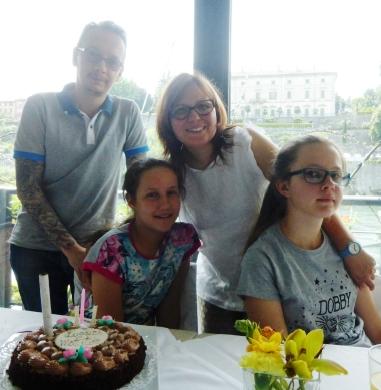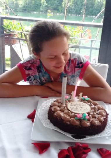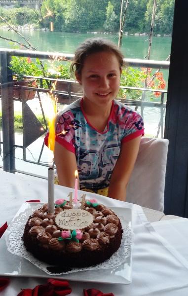 Poi, l'undicesimo compleanno di Matilde, festeggiato con mamma, papà, Irene ed i nonni sulle rive dell'Adda.