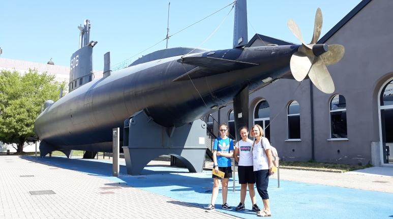 Sopra: di fronte ed all'interno del grande Sottomarino Toti. Poi un lungo percorso nelle sezioni del Museo, fra aerei, treni, navi e la visita ai numerosi laboratori .