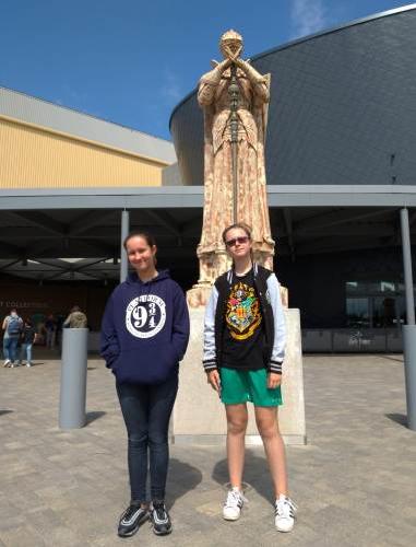 Mentre Matilde era impegnata con l'attività sportiva a Bormio, Irene perfezionava il suo inglese in un college a Manchester. Sopra, il giorno del suo rientro a Linate. In agosto per lei il ritorno nel Regno Unito con mamma, papà e Matilde per una breve vacanza a Londra. Sotto, Matilde e Irene al museo di Harry Potter.
