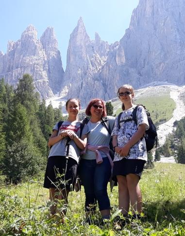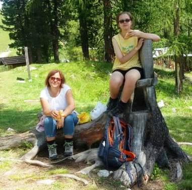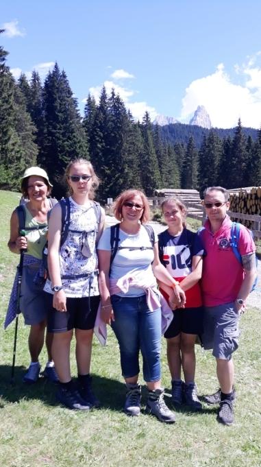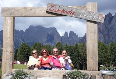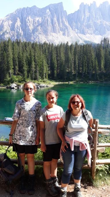 A fine luglio il ritorno in Val di Fassa per Matilde, Irene mamma, papà ed i nonni. Eccole nelle prime gite nel Gruppo del Catinaccio ed al Lago di Carezza.