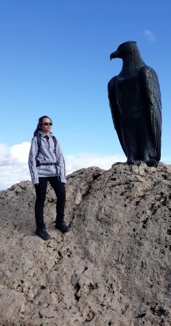 A fianco, Irene al Monumento in ricordo di Theodor Christomannos. Pioniere del Turismo Sudtirolese.